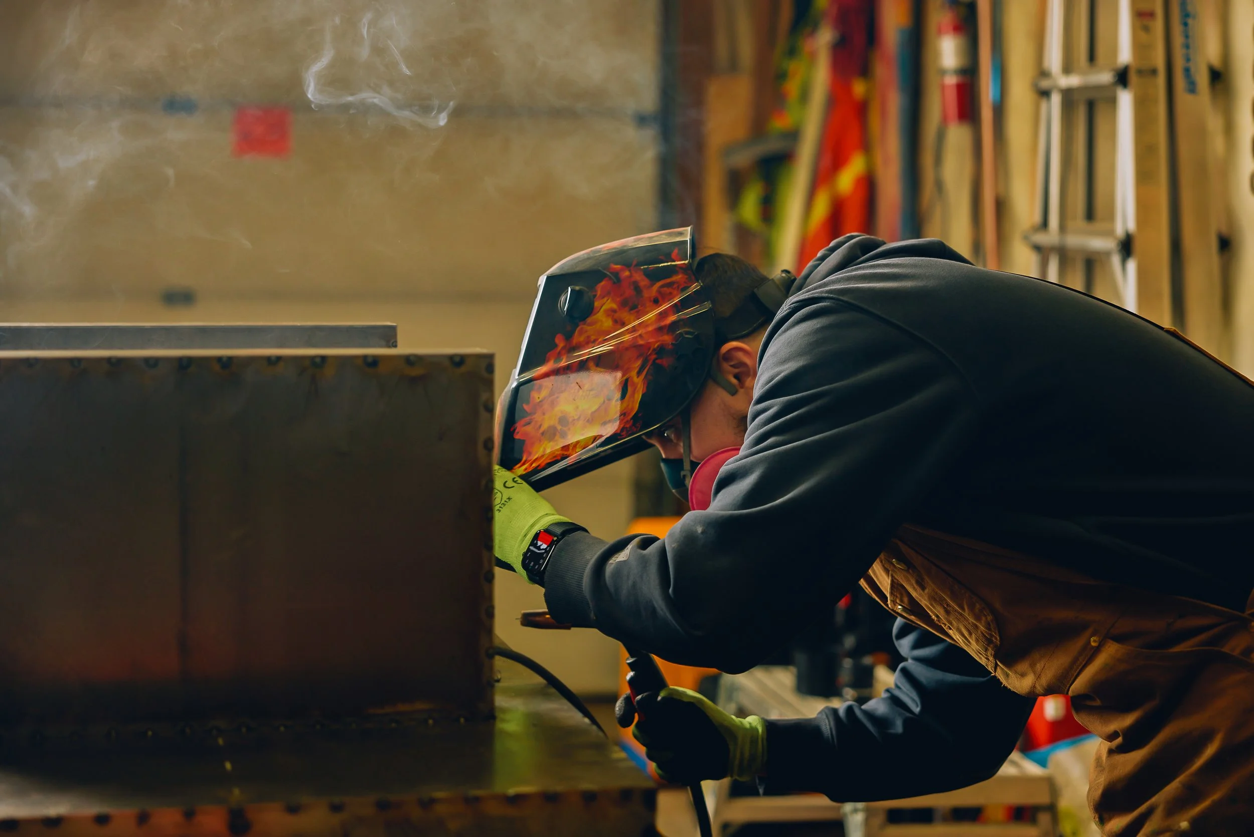 The tack welds you see on the table—those were just the first step. You’re technically supposed to grind them down to make it clean and smooth. But I stopped halfway and thought, This actually looks kind of great—like it’s frozen mid-process. So I left them.