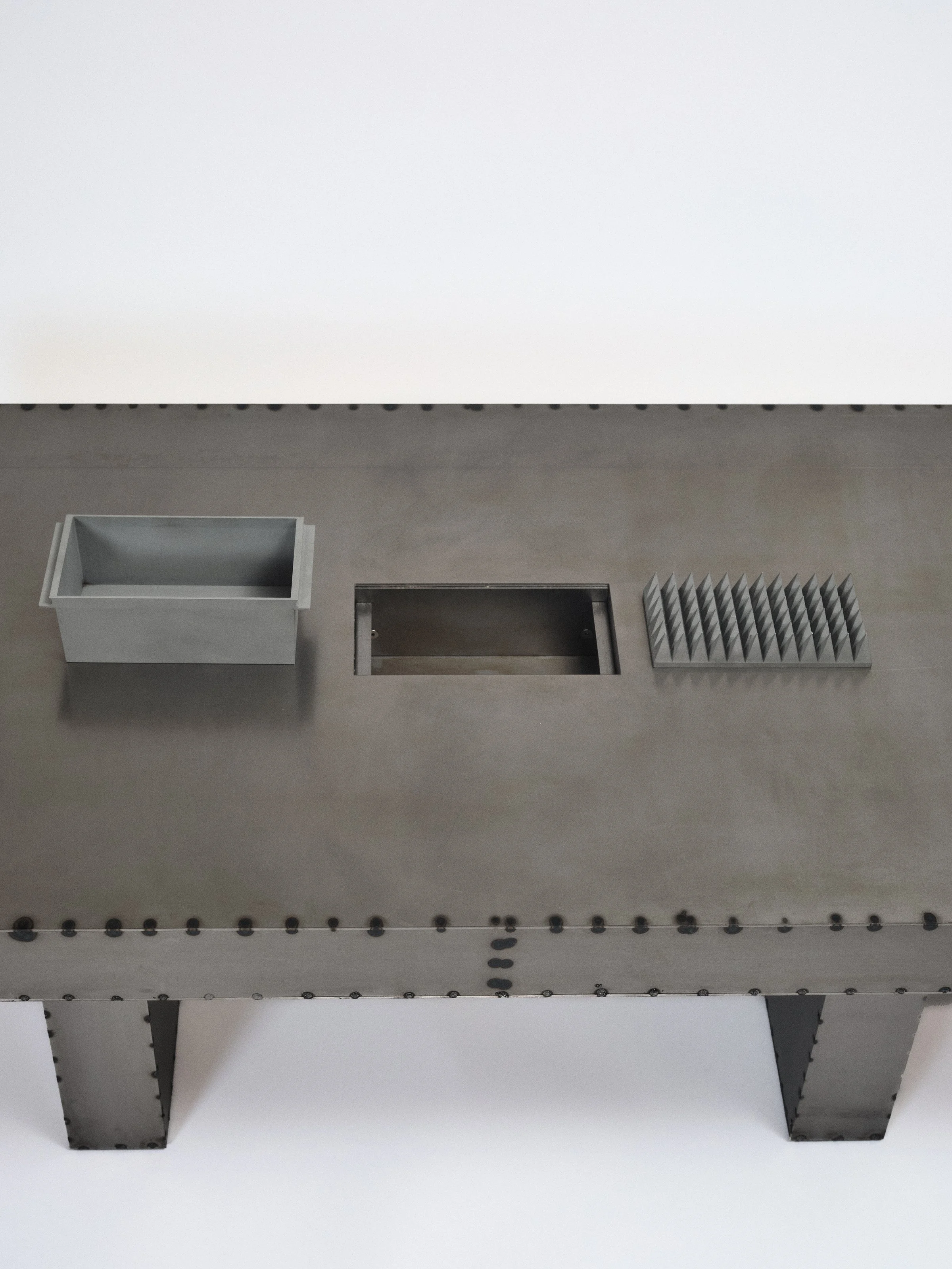 Andrew: Yeah, I want everything I make to be usable, or at least interactive, if it’s more on the sculptural side. But none of this was super planned. I just go from idea to idea. Over time, you start to see these patterns emerge. Sculptural elements show up a lot, but there’s always a point of interaction. The rock lamp, for example, is meant to be repositioned however you like. The brutal table has a multifunctional centerpiece. I want the work to exist between utility and art.