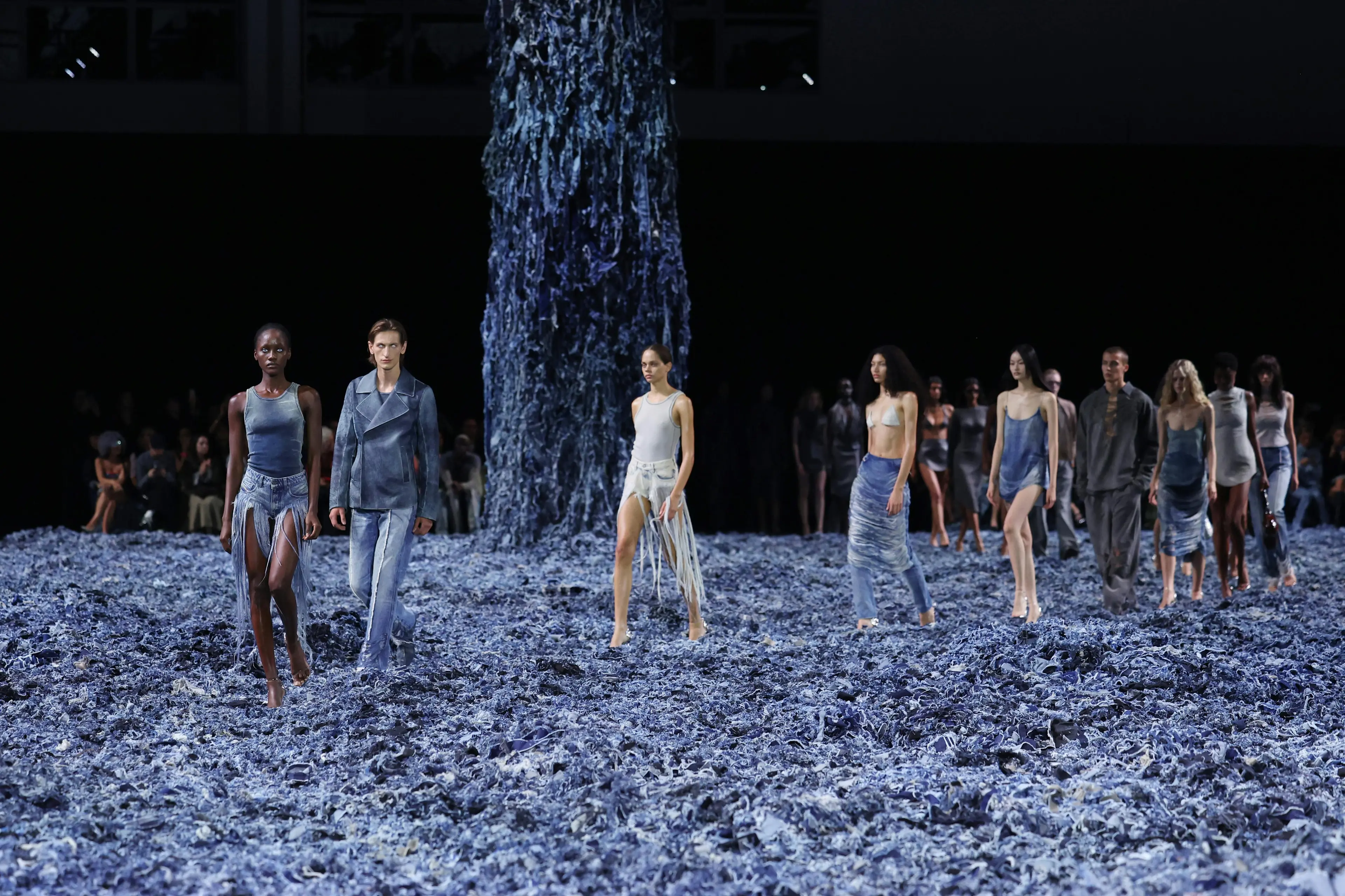 Or consider Diesel under Glenn Martens, the reigning king of chaotic energy. He floods runways with industrial wastelands, casts real couples making out in the front row, and turns deadstock denim into sculptural statements. It’s messy, maximalist, sometimes absurd, but it’s not mindless. In fact, it feels almost meditative. When everything is screaming for your attention, you become hyper-aware of what you're feeling.