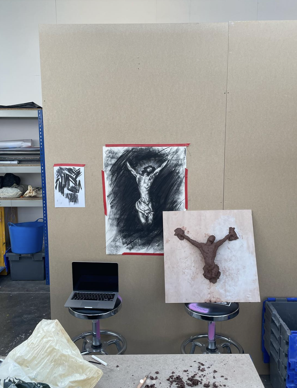 In seeking to explore these nuanced themes, Diaz aimed to convey the hypocrisy inherent in the reforms undertaken by the Church to align with modern morality and the contemporary conversations surrounding the false representation of Jesus’ ethnicity posing geopolitical implications of “white-washing”. Ultimately this led him to display a meticulous examination of the anatomy of the crucifixion through a number of drawings and sculpting in clay, with the end result being a number of exhibited castings.