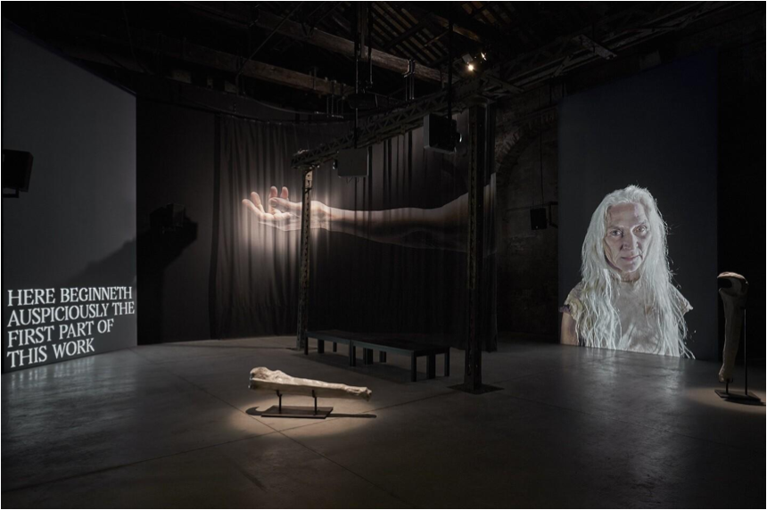 Through this work, and the artist’s powerful command of language, Jones demonstrated how art might take on the responsibility of the law, embodying and emboldening truth and freedom when that very law is no longer in the best interest of those it is intended to protect. Tremble Tremble looks to the example of Italian scholar and activist Silvia Federici and the 1970s Italian Wages for Housework movement, in particular a chant which proclaimed “tremate, tremate, le streghe sono tornate!” (tremble, tremble, the witches have returned!).” The figure of the witch, performed by Irish actor Olwen Fouéré, suggests a matriarchal realm unfettered by Ireland’s centuries of oppression against women. In bringing together testimony, folk lyrics, and the artist’s own extensive research into Ireland’s history and laws, Tremble Tremble demonstrates how art can come to act as a site of active resistance.