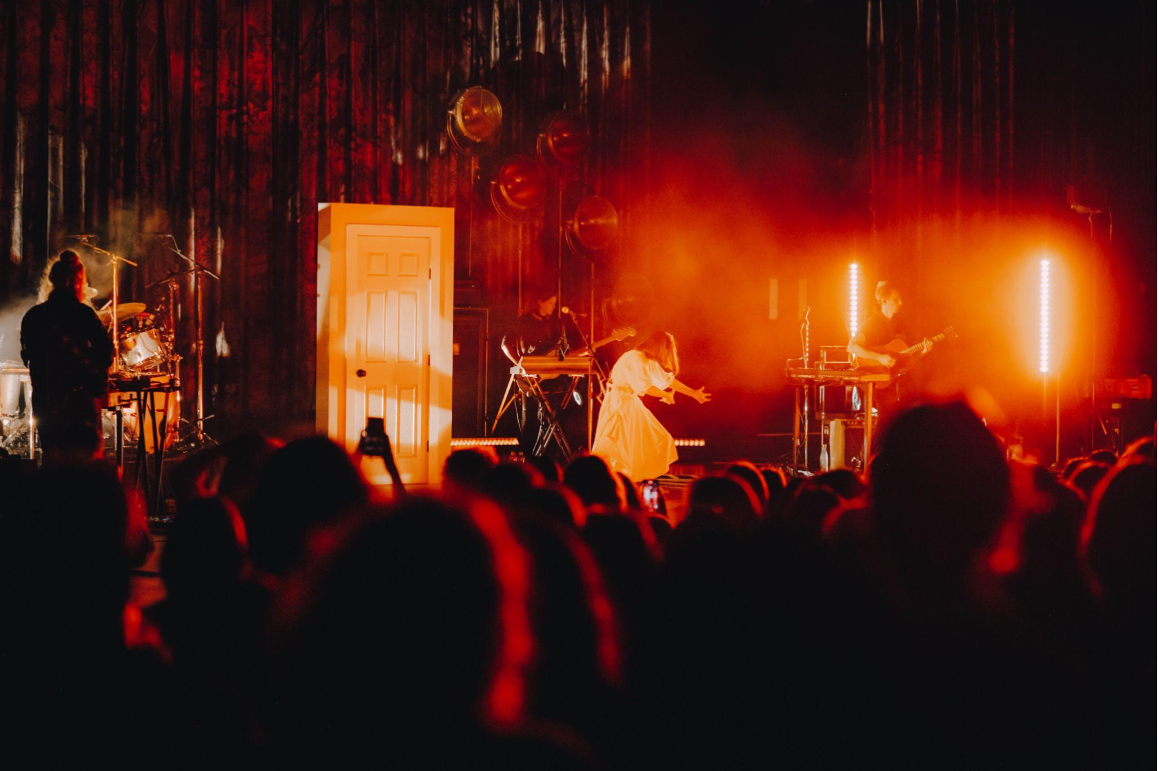 Mitski opened with “Love Me More”, one of the newest singles from Laurel Hell, and the Roundhouse came to life. I found myself welling up despite the fact that I’ve never actually cried to this song in my life (it’s too upbeat – I did cry soon after, though). This set the tone for what was to come – the ABBA-esque piano of “Should’ve Been Me”, followed by a deep dive into her 2014 album Bury Me At Makeout Creek. Mitski’s dance moves throughout the set were completely mesmerising. At times she was a ventriloquist’s puppet, at others she was a ghost floating around the stage. During “Working for the Knife”, she mimes the slitting of her own throat, reflecting her struggles with fame and self-identity. It’s an impressive demonstration of storytelling that only Mitski could produce. The sense of detachment that her live performances create is alluringly unique – she is an artist, and you are watching her create art. Totally in her own zone, never disturbed by the world outside. When you step into the Roundhouse, you are in Mitski’s world.